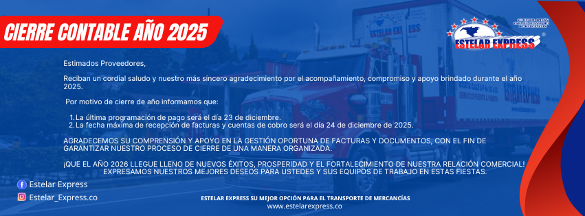 Seguridad. Estelar Express S.A.S., cuenta con una póliza de seguros con SURAMERICANA para transporte de mercancías, la cual nos permite contar con un amparo de hasta Setecientos Millones de pesos ($700.000.000) por despacho, con una ampliación, si es requerida de hasta Mil Doscientos Millones de pesos ($1.200.000.000) por despacho. Todos nuestros vehículos cuentan con un sistema de rastreo y localización satelital y vía celular, lo cual nos permite ofrecer a nuestros clientes seguridad e información en línea sobre el estatus del envío de sus mercancías. Toda nuestra carga va amparada por una guía que constituye el contrato de transporte. Esta guía provee la información requerida para transitar en el territorio nacional: fecha, nombre remitente, teléfono, dirección, origen, destino, peso, medidas, contenido, piezas, valor declarado y demás datos que garanticen buena trazabilidad de sus envíos. Esta información es provista por el cliente quien debe garantizar su veracidad.